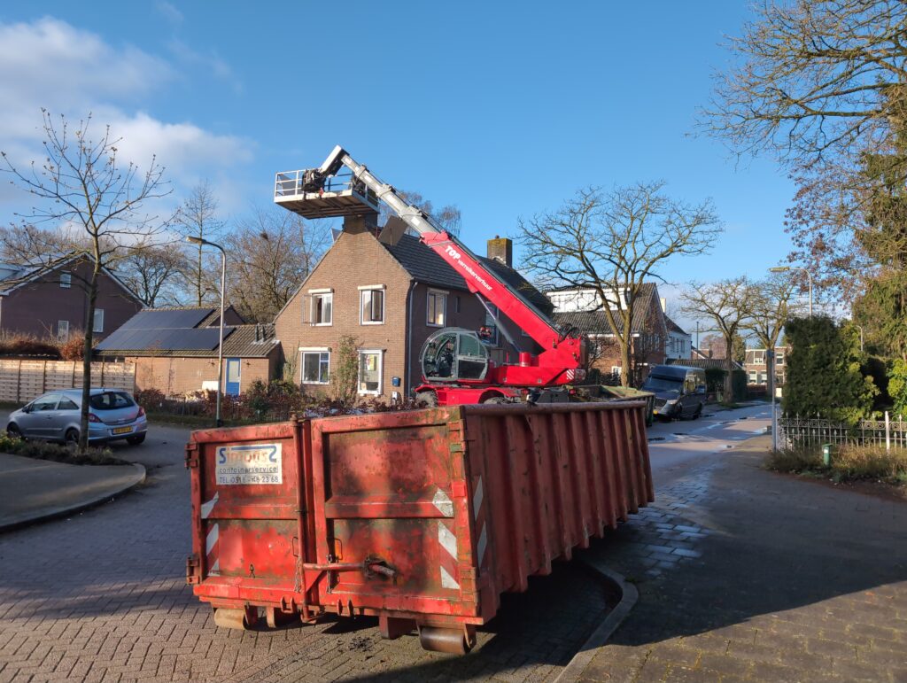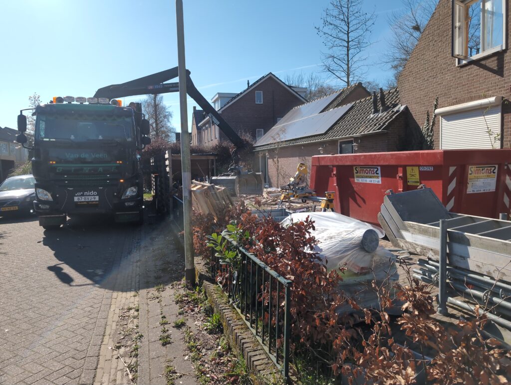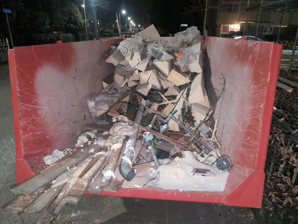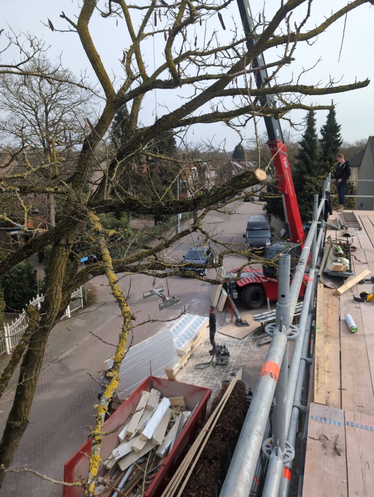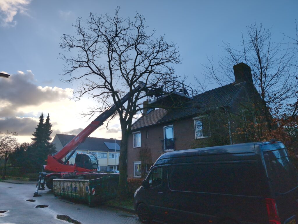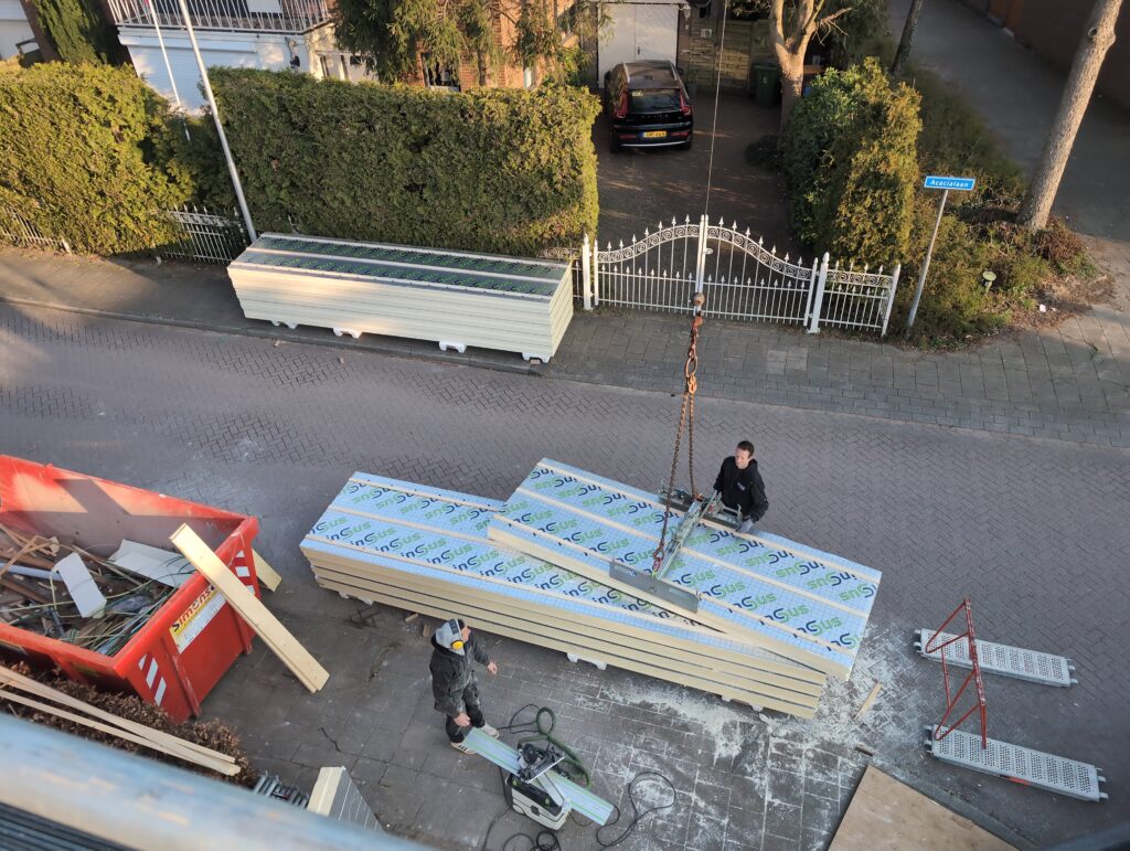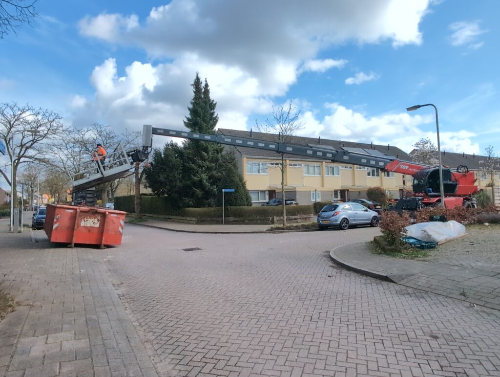 Ook is de WTW/ventilatie afgerond, voor wat het leggen van de buizen betreft. Dat is inclusief het trekken van (90mm) buizen van zolder naar de voorkant van de woonkamer. Maar ook op zolder zijn er nog enkele bij gekomen. Ook zijn de eerste drie (van de vijf) airco-buizen naar buiten toe geluid naast het balkon. Fun fact: Die worden dan dus aangelegd, maar liggen vervolgens weer in de weg, dus worden de netjes afgewerkte buizen toch nog even losgeschroeft om er bij te kunnen voor het metselen. Als dat geen samenwerking is… 🙂