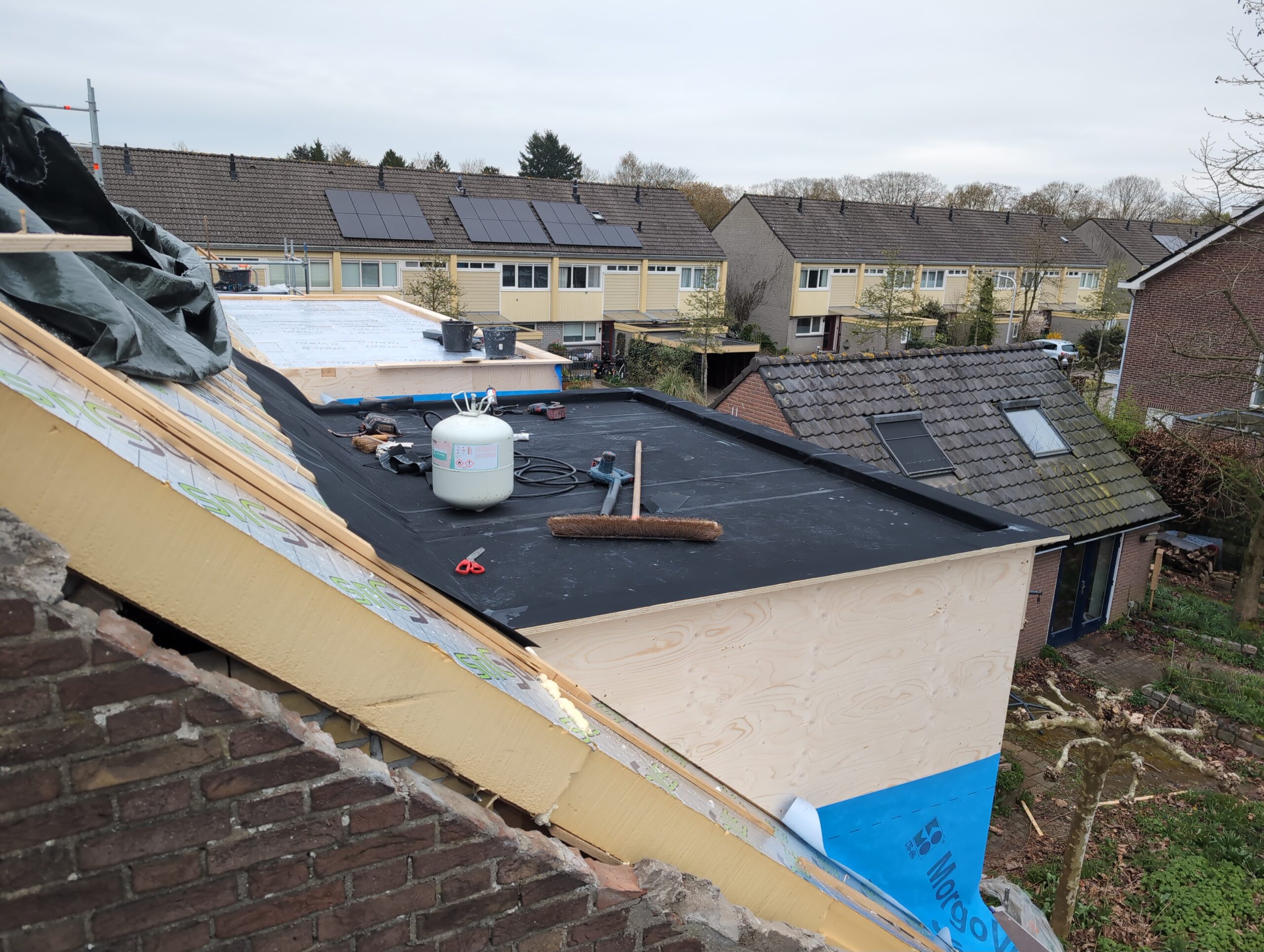 Verder is er heel veel afgewerkt aan de dakkapellen. Daar is alleen niet continue heel veel van te zien, anders dan het nu bekleed is met EPDM. Uiteraard nadat het volledig geisoleerd is met 12cm PIR.